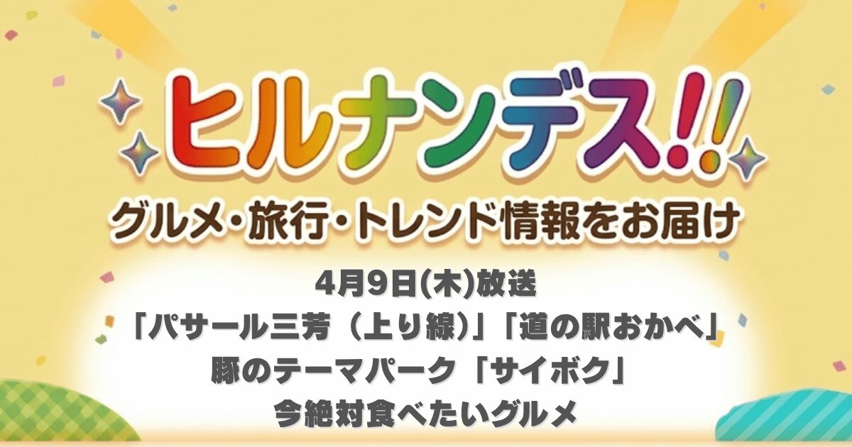 本日4月9日放送の『ヒルナンデス!』は、一般道からも入れる超人気スポット「Pasar(パサール)三芳(上り)」から「道の駅おかべ」特集! 今が旬の山菜から、三芳PA限定の絶品おやつまで、ドライブがてら寄りたくなる情報が満載です。