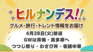 お得情報 GWにおすすめ!青梅・奥多摩へ。つつじ祭り・わさび丼・老舗中華まで【ヒルナンデス】【4月28日放送】 4月28日放送のヒルナンデスでいとうあさこ&大久保佳代子が巡った青梅・奥多摩スポットをまとめました!わさび丼・老舗町中華・つつじまつりなど新宿から約1時間で行ける絶品グルメ旅♪ 2026.04.29 お得情報グルメヒルナンデス旅行